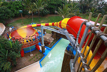 This thrilling tornado water slide is having enthusiasts lining up for the experience. Guests get to head down an enclosed tunnel, 0.75 meters in diameter, 9.5 meters high and approximately 25 meters in length, where they are then swirled round and round before exiting through “the eye of the storm” into a 6 metre splash pool below. This type of slide has proven extremely popular with water park junkies in America and Canada over the past eight years and is the top three of all water slides in the world. Now Durban has its very own!